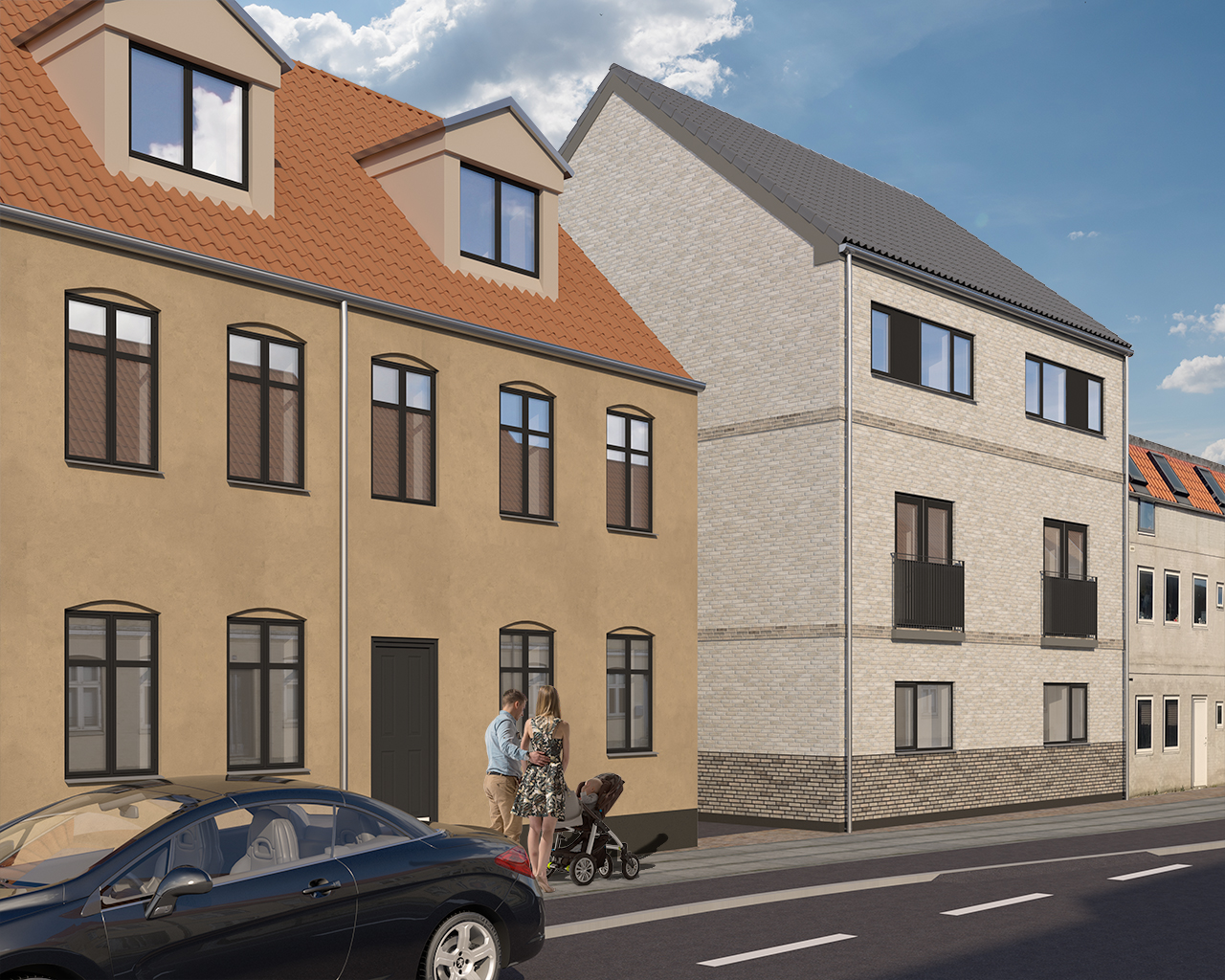 Horsens City II K/S består af tre separate bygninger med i alt 11 lejemål, som alle er boliger. Lejerne har egen gårdhave og private parkeringspladser, hvilket er meget attraktivt i centrum af Horsens. Desuden er det sjældent, at der bliver udbudt nyopførte ejendomme med beliggenhed i centrum. På trods af, at det er nyopført, er den gennemsnitlige husleje kun på kr. 1.137. Sælger giver et års lejegaranti og 5 års entreprenørgaranti. Imbro Horsens City II K/S består af tre separate bygninger. Første bygning består af 4 rækkehuse, som er udmatrikuleret enkeltvis, så de senere kan frasælges løbende. De to andre bygninger ud mod vejen indeholder henholdsvis 3 og 4 separate lejemål. Alt opføres i ejerkvalitet med Siemens hårde hvidevarer, Svane-køkken og hårde parket-gulve.