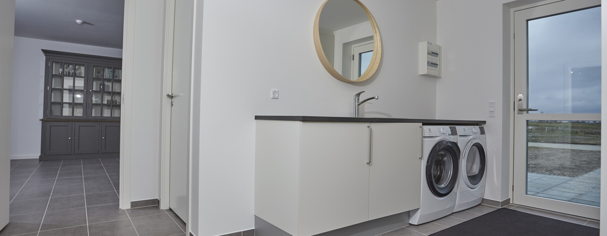 Alt er udført i gedigne materialer, hvilket sikrer lave driftsomkostninger i hele investeringsperioden. Alt i hårde hvidevarer, opvaskemaskine, tørretumber og vaskemaskine.